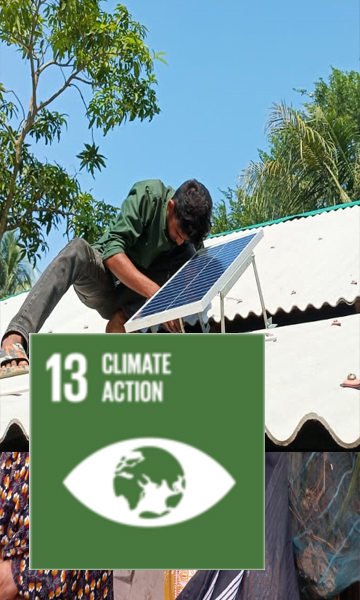 ADAMS Foundation activities related to climate Action (SDG 13) is implemented by Climate change adaptation, mitigation, Loss & Damage and disaster management program through its efforts to installling solar panel, Improve coock tove and implementing capacity building workshop and training program. ADAMS foundation disasyter management program provided emergency support to 4,519 households in 1998 flood, Sidr, Ayla, covid-19. ADAMS foundation climate change program has helped to raise plinth of 400 houses, imstall 30 raised tubles and 170 sanitary latrins to climate vulnerable households and also supported climate adaptive agricultura support throug providing 50 case fishing, 550 poultry, duck and goat rearing and climate smart homeastead gardening to 600 HH for alternative livlyhood solutions.